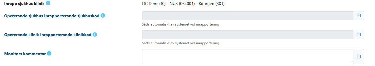 För rollen monitor syns en kryssruta bredvid alla inputfält. Den används när monitor vill markera vilka fält som ska sparas ner i registret.